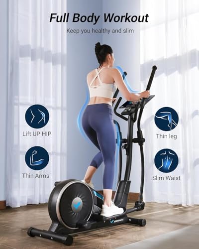 The MERACH Elliptical Exercise Machine for Home Use is the ultimate fitness solution for those looking to maximize their cardio workout in the comfort of home. Featuring a hyper-quiet magnetic drive system, it ensures a smooth, silent workout experience, perfect for home use without disturbing others. With 16-level automatic resistance adjustment, this elliptical machine offers seamless intensity changes, allowing you to customize your workout for weight loss, endurance, or muscle toning. The included MERACH app integration provides workout tracking, personalized fitness plans, and progress monitoring, keeping you motivated and on track. The electronic display on the knob shows key metrics such as time, distance, calories burned, and heart rate to help you stay focused on your goals. Designed with a compact, ergonomic structure, this elliptical also features non-slip pedals and is a great space-saving option for any home gym. Experience a full-body workout with the MERACH elliptical for home use, combining convenience, efficiency, and comfort.