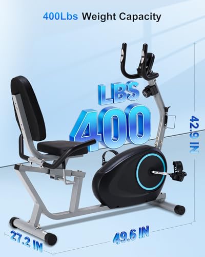 Recumbent Exercise Bike for Seniors – 400LB Weight Capacity Recumbent Bikes with Comfortable Seat, Pulse Sensor, 16-level Resistance, LCD Monitor
