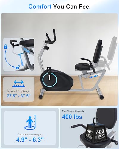 Specification: Recumbent Exercise Bike for Seniors – 400LB Weight Capacity Recumbent Bikes with Comfortable Seat, Pulse Sensor, 16-level Resistance, LCD Monitor