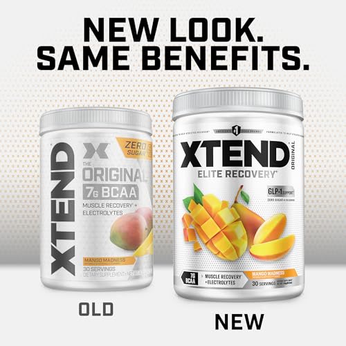 Xtend Original BCAA Powder, 7g BCAAs and 2.5g L-Glutamine for Muscle Recovery Hydration and Lean Muscle, Sugar Free Intra and Post Workout Drink with Electrolytes, Mango Madness, 30 Servings