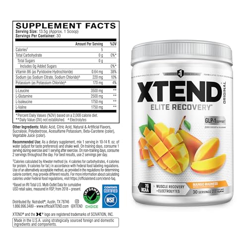 Specification: Xtend Original BCAA Powder, 7g BCAAs and 2.5g L-Glutamine for Muscle Recovery Hydration and Lean Muscle, Sugar Free Intra and Post Workout Drink with Electrolytes, Mango Madness, 30 Servings