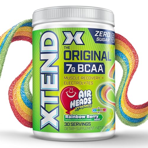 Xtend Original BCAA Powder Airheads Rainbow Berry Flavor, 7g BCAA and 2.5g L-Glutamine, Sugar Free Post Workout Muscle Recovery Drink with Amino Acids for Men & Women, 30 Servings
