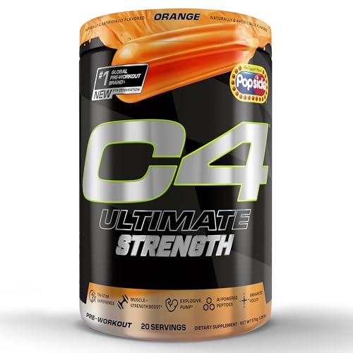 Cellucor C4 Ultimate Strength Pre Workout Powder – Tri-Stim Experience 300mg Caffeine+TeaCrine+Dynamine – Creatine & Beta-Alanine – Energy Supplement for Men & Women – Orange Popsicle, 20 Servings
