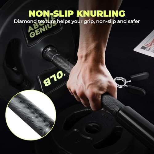 AboveGenius Barbell Weight Set, 45 LB Adjustable Free Weights Bar Set for Home Gym Strength Training, Full Body Workout, Muscle Building, Home Fitness Weight Lifting Equipment
