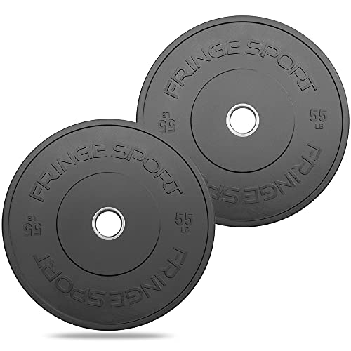 Fringe Sport MILSPEC Bumper Plates Pair, 10lb – 55lb Black Rubber Weight Plate for 2″ Barbells, Low Odor Low Noise Olympic Bumper Plates for Intense Strength Training and Weight Lifting Sessions