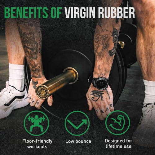 BUILT TO BE DROPPED: Our Bumper Plates Set are made of 100% virgin rubber, making this Rubber Weight Plates ideal for home gyms and indoor use as these bumper plates naturally absorb sound and have a dead bounce when dropped from the overhead position.