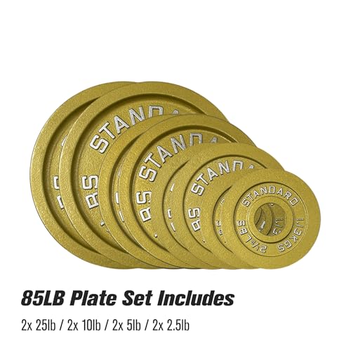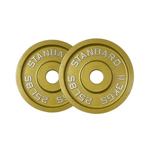 Gold Finish Olympic Steel Plates – Pairs and Sets 2 Inch Barbell Standard in Premium Gold for Weight Lifting