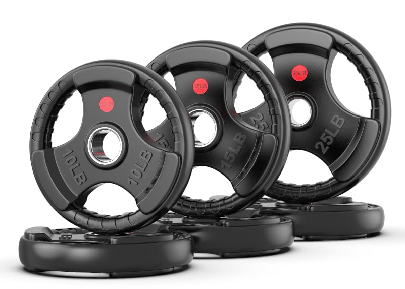 WIDE RANGE OF WEIGHTS – Our bumper plates can apply to all the 2 inch Olympic bars. We have 2.5lb,5lb, 10lb,15lb, 25lb, 35lb, 45lb and different combinations about the choices and you can add different size weight plates to change the weight you can bear
