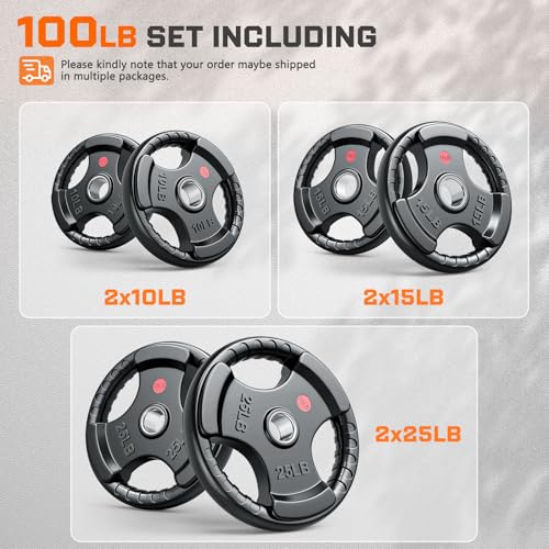 100 LB SET: Including 2×10+2×15+2x25LB weight plates. Due to logistics weight limits, your order may be divided into individual or multiple separate packages