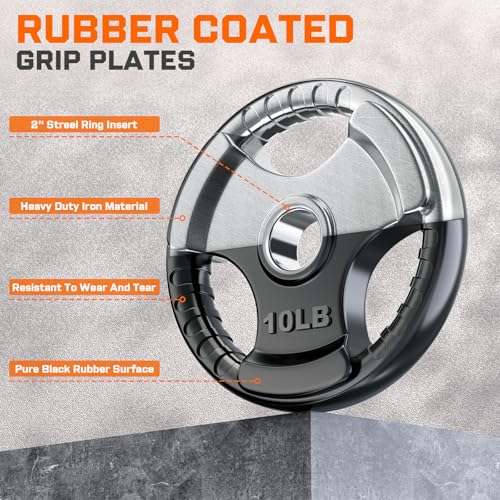 XDDIAS Rubber Weight Plates for Barbell, 2-Inch Olympic Grip Plate for Strength Training, Weightlifting and Bodybuilding in Home & Gym, Solid Cast Iron Weight Plates Pair and Sets