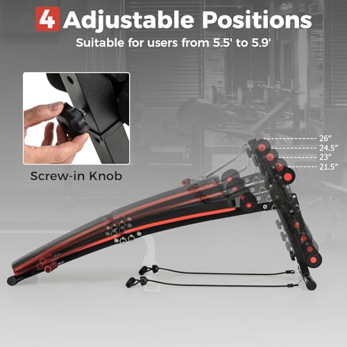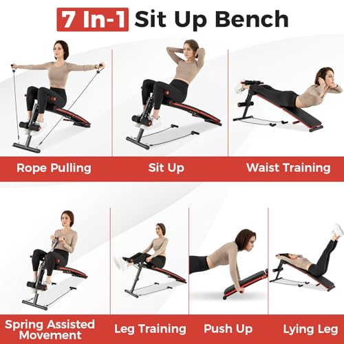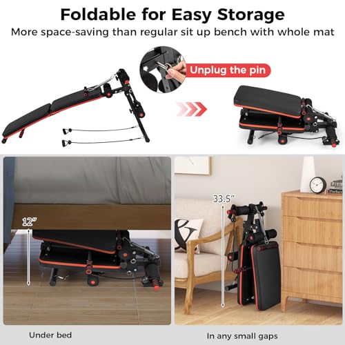 GYMAX Sit Up Bench, 330lbs Folding Decline Workout Bench with Spring Handle, Elastic Ropes & 4 Level Adjustable Height, Incline Weight Bench for Situp, Ab Crunch, Strength Training Exercise for Home Gym