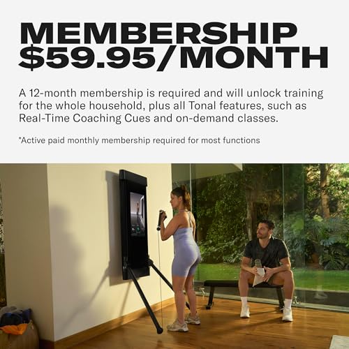 POWERFUL MEMBERSHIP REQUIRED [SEPARATE]: Each Tonal purchase requires a membership with a 12-month minimum commitment of $59.95/month to get the most out of every workout, including a regularly-updated library of thousands of workouts, personalized resistance that intuitively adjusts as you get stronger, real-time coaching cues, Dynamic Weight Modes, and automatic progress tracking. One membership unlocks a personalized training experience for everyone in your household.