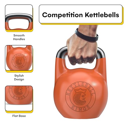 Kettlebell Kings Competition Kettlebells Weight (33mm handle) 4-32 KG | Hand weights Workout Gym Equipment & Strength training sets for Women & Men | Weights set for Home Gym