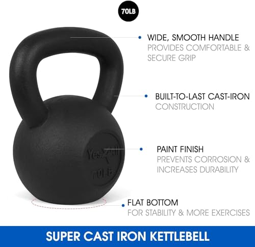Yes4All 70 lbs Kettlebell Heavy Cast Iron Solid Smooth Handle Weights for Women/Men, Strength Training Equipment