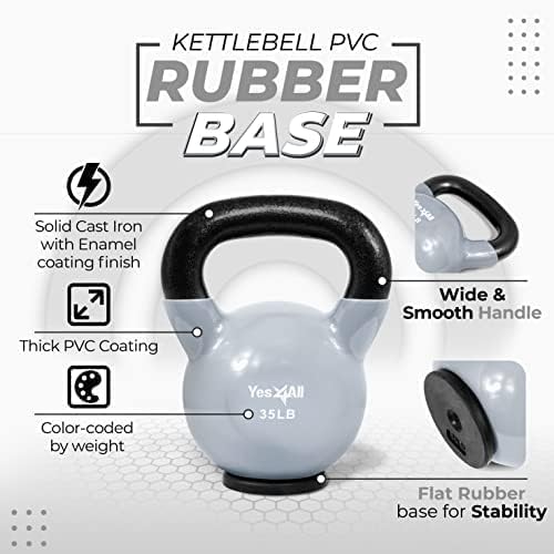 Yes4All Kettlebells Rubber Base, Kettlebell Set for Women, Strength Training Kettlebells Weights (10-65 lbs)