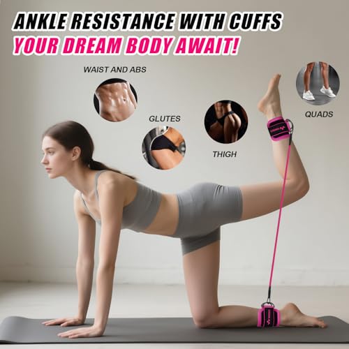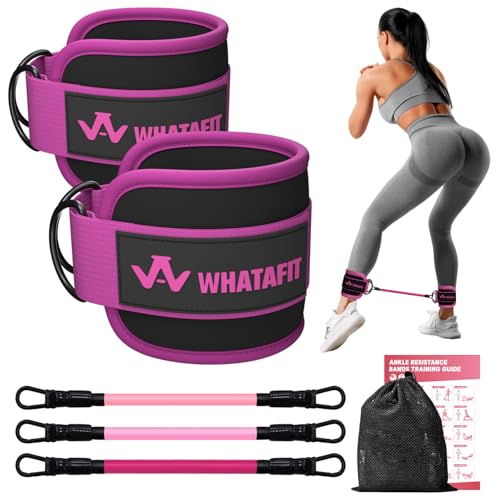 WHATAFIT Ankle Resistance Bands with Cuffs, Ankle Bands for Working Out, Ankle Resistance Band for Leg, Booty Workout Equipment for Kickbacks Hip Fitness Training, Exercise Bands for Butt Lift Women