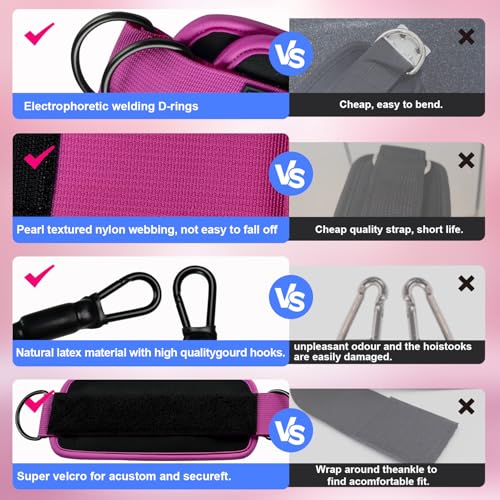 A Reassuring Design:Our tube bands are made from durable natural latex that can be stretched repeatedly year after year,ankle strap has high quality sponge, soft and comfortable,sturdy stainless steel coated metal D-rings on both ensure maximum security. More peace of mind for your legs and glutes training.