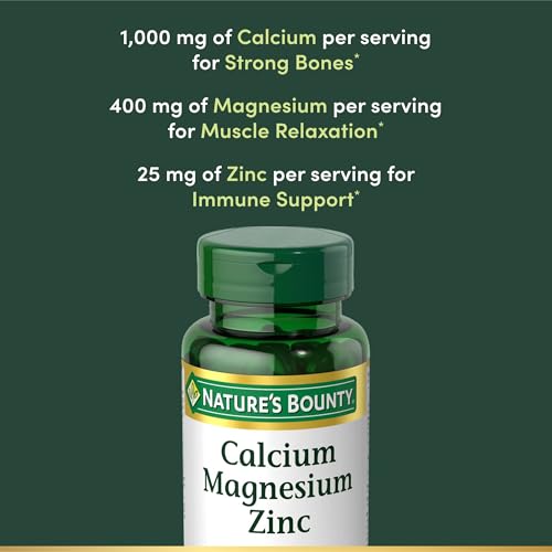 Specification: Nature’s Bounty Calcium Magnesium & Zinc Caplets, Immune & Bone Health, Daily Supplement, 1000mg Calcium, 400mg Magnesium, 600 IU Vitamin D, Gluten Free, 100 Caplets
