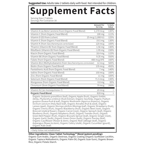 CERTIFIED ORGANIC MULTIVITAMIN: Organic vitamins and minerals are made from real foods—kindly harvested, gently extracted using water and proudly third-party tested and certified Organic, Non-GMO, Gluten Free, Vegan & Kosher