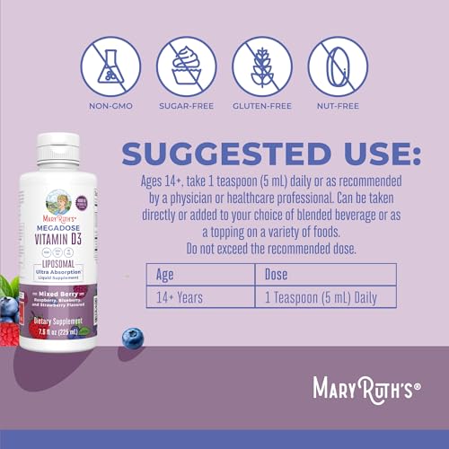 For Most Lifestyles: MaryRuth’s Megadose D3 Liquid Liposomal is Non-GMO, Vegan, Dairy Free, Gluten Free, Soy Free. No Added Sugar, No Artificial Colors, No MSG, Made in a GMP Facility. This product CONTAINS nut allergens: Coconut-derived glycerin. B Corp Certified.