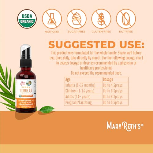MaryRuth Organics Vitamin D USDA Organic | VIT D3 Liquid | Sugar Free | Liquid VIT D Spray Immune Support for Adults & Kids | Bone Health| Vegan | Gluten Free | Non-GMO | 30 Servings