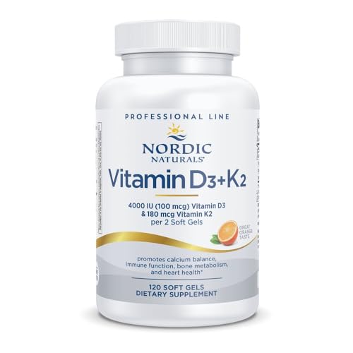 Nordic Naturals Professional Grade Vitamin D3+K2 Supplement, Orange Flavor – 60 Soft Gels – 4000 IU Vitamin D3 & 180 mcg K2- Promotes Calcium Balance & Immune Function – Non-GMO – 30 Servings