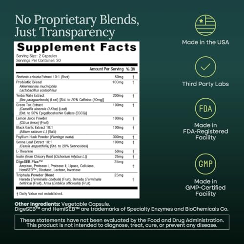 Specification: GLP-1 Support + Colon Cleanse – Weight Loss, Gut Health & Energy – Appetite Suppressant & Fat Burner – Berberine, Akkermansia Probiotic, Yerba Mate, Psyllium Husk, Senna Leaf – Women & Men, 60capsules