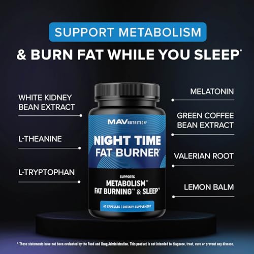 Specification: Night Time Fat Burner for Weight Loss Support & Sleep Aid | Appetite Suppressant, Carb Blocker, Nighttime Metabolism Booster for Stomach Fat Burner & Night Shred with Melatonin | Non-GMO, Vegan 60ct