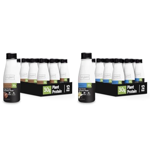 Bundle of Soylent Complete Protein Shake, Chocolate & Vanilla, 30g Protein, Vegan, Dairy Free and 0g Sugar, Ready to Drink Protein Drinks, 11oz (2 12-Packs)