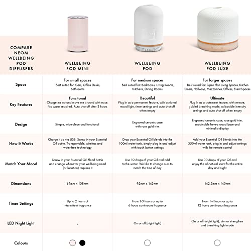 NEOM – Wellness Pod Luxe | Premium Ceramic Ultrasonic Essential Oil Diffuser, 350ml | Ceramic Cover, Remote Control, LED Light & Timer | Aromatherapy Diffuser | Home Fragrance…