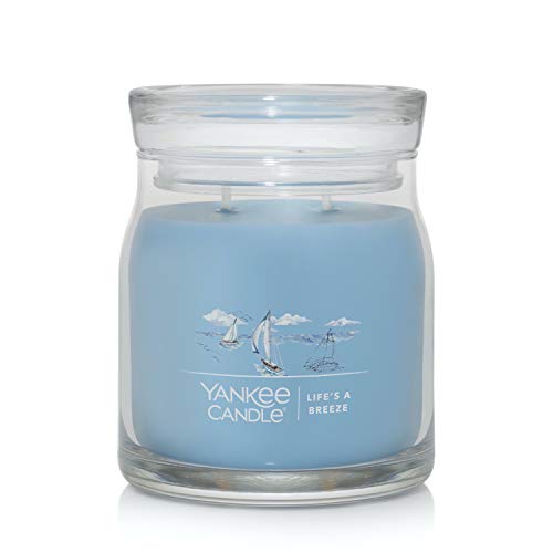 Yankee Candle Life’s A Breeze Scented, Signature 13oz Medium Jar 2-Wick Candle, Over 35 Hours of Burn Time
