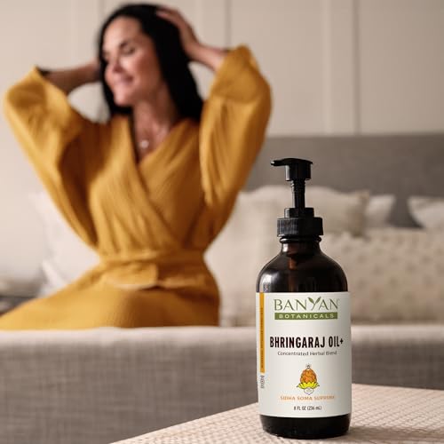 Banyan Botanicals Bhringaraj Oil+ – Organic Herbal Oil with Bhringaraj, Gotu Kola, and Rose – for Organic Skin Care and Hair Care – 8 oz – Non-GMO Sustainably Sourced Physician-Formulated