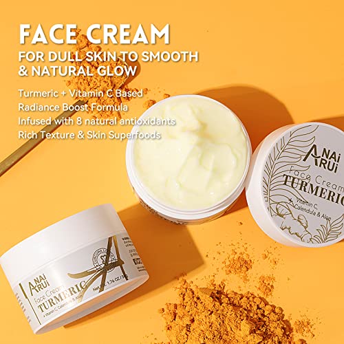ANAI RUI Facial Moisturuzier, Turmeric Face Cream with Vitamin C for Hydrating, Firming, Tightening Skin, Turmeric Vitamin C Cream for Dark Spots, Dry Skin, 1.76 OZ