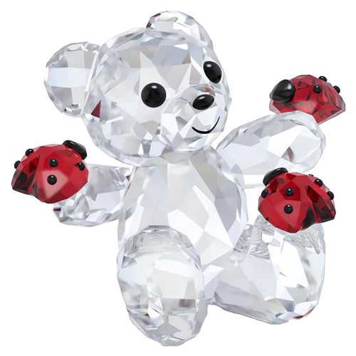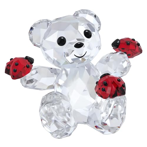 Delightful Design: Spread joy and good wishes with this endearing crystallized creation, showcasing the beloved Kris Bear alongside three charming ladybugs fashioned from vibrant red and black crystals