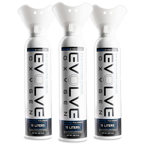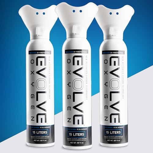 EVOLVE 15-Liter Pure Oxygen Canister with Breathing Cup | Portable Oxygen Can | Ideal for Home Use and Outdoor Activities | Designed by Firefighters | Made in The USA | Pack of 3
